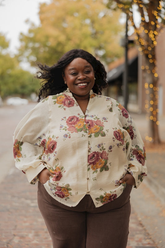 Merlot Floral Ruffle Collar Top (S-2XL)