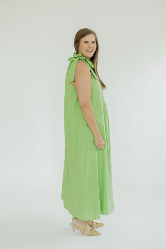 Julia Green Apple Tie Neck Maxi Dress (S-3XL)