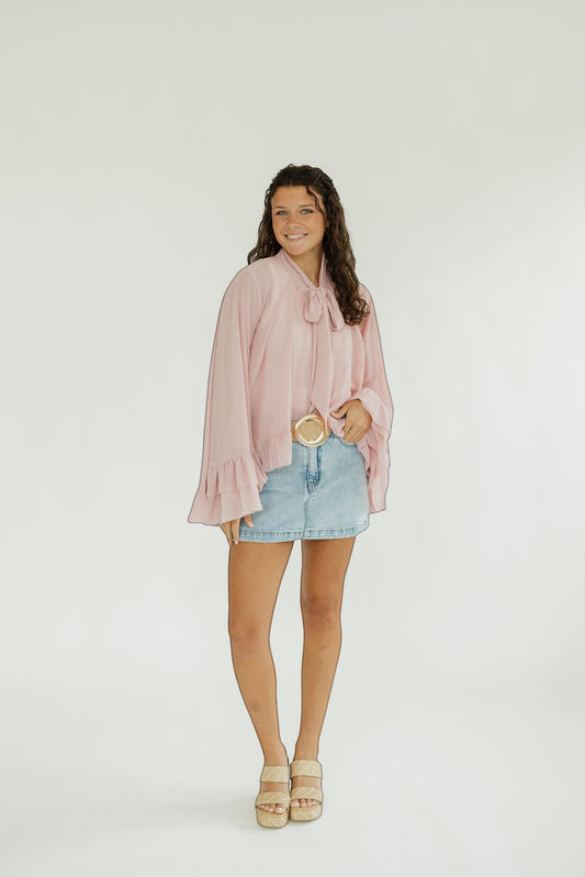 Blush Ruffled Chiffon Blouse (S-3XL)