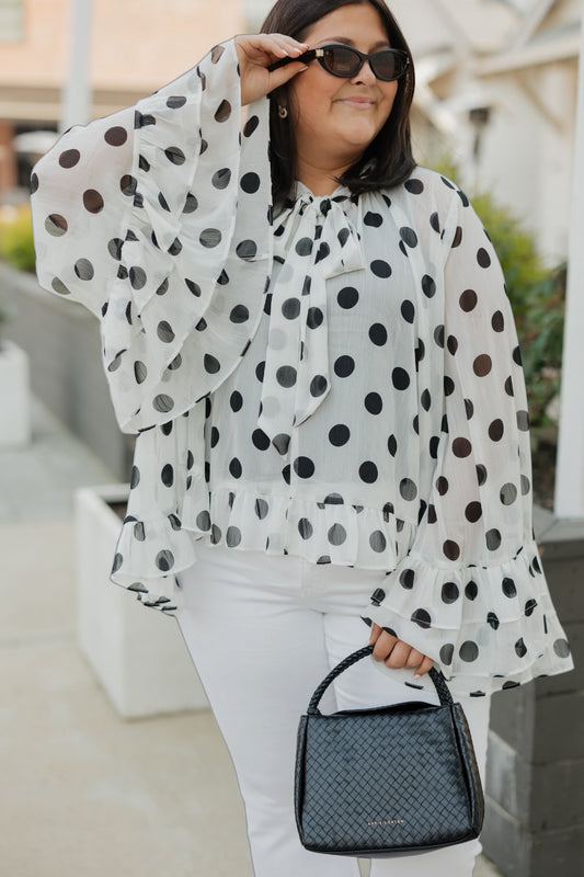 Polka Dot Ruffled Chiffon Blouse (S-3XL)