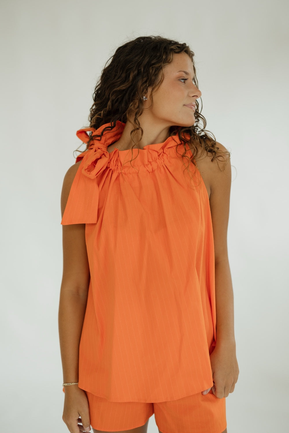 Bridget Orange Pinstripe Tie Neck Tank (S-3XL)