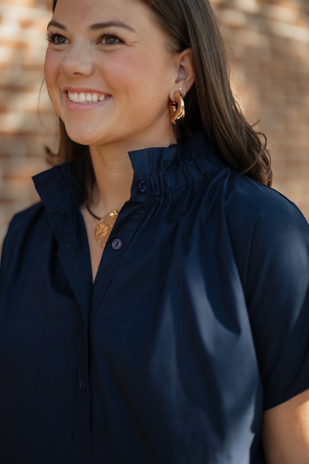 Crafted in a rich navy hue, the Emma features a relaxed shift fit that flatters all body types, while subtle details like a crew neckline and minimal tailoring keep it chic and modern. Dress it up with heels or keep it casual with flats — the styling possibilities are endless.
