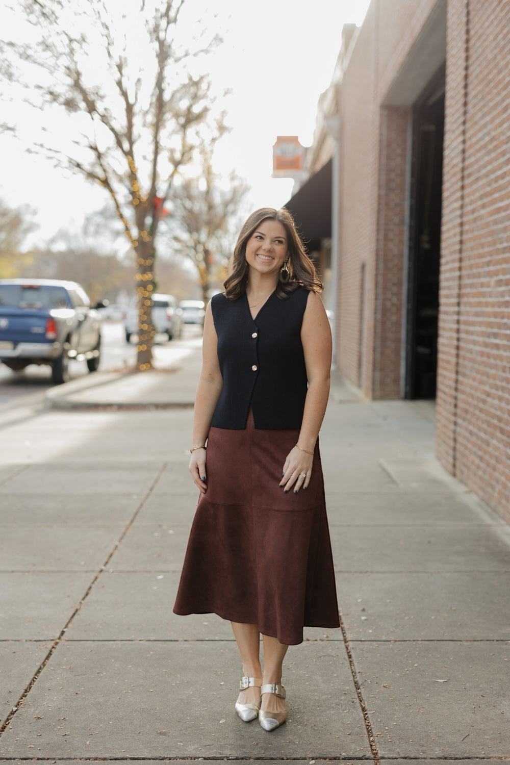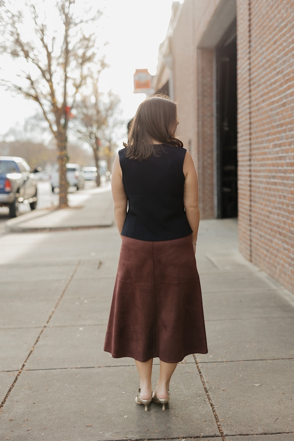 The sleeveless design makes it ideal for layering over crisp shirts, lightweight knits, or dresses, while the classic black hue ensures effortless pairing with any outfit. Its clean lines and refined texture create a sophisticated silhouette that elevates both casual and dressed-up looks