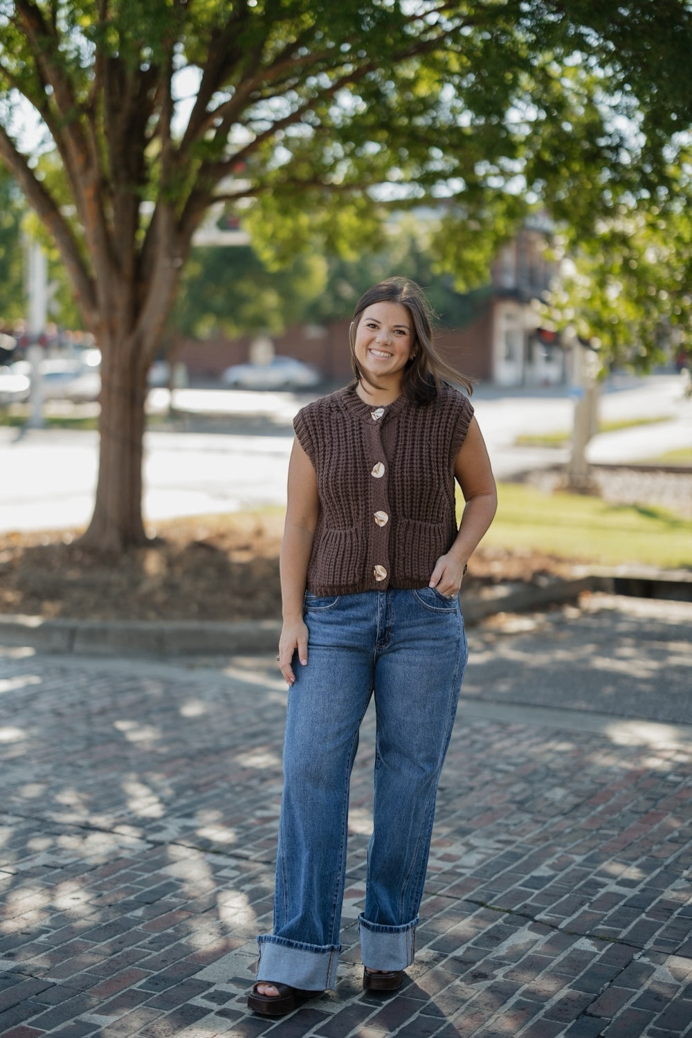 Effortlessly chic and perfectly layered, the Chloe Brown Sleeveless Sweater is a wardrobe essential for transitional seasons. Crafted from a soft, mid-weight knit in a rich brown tone, this sleeveless sweater offers a flattering, streamlined silhouette that pairs beautifully over blouses, tees, or dresses.