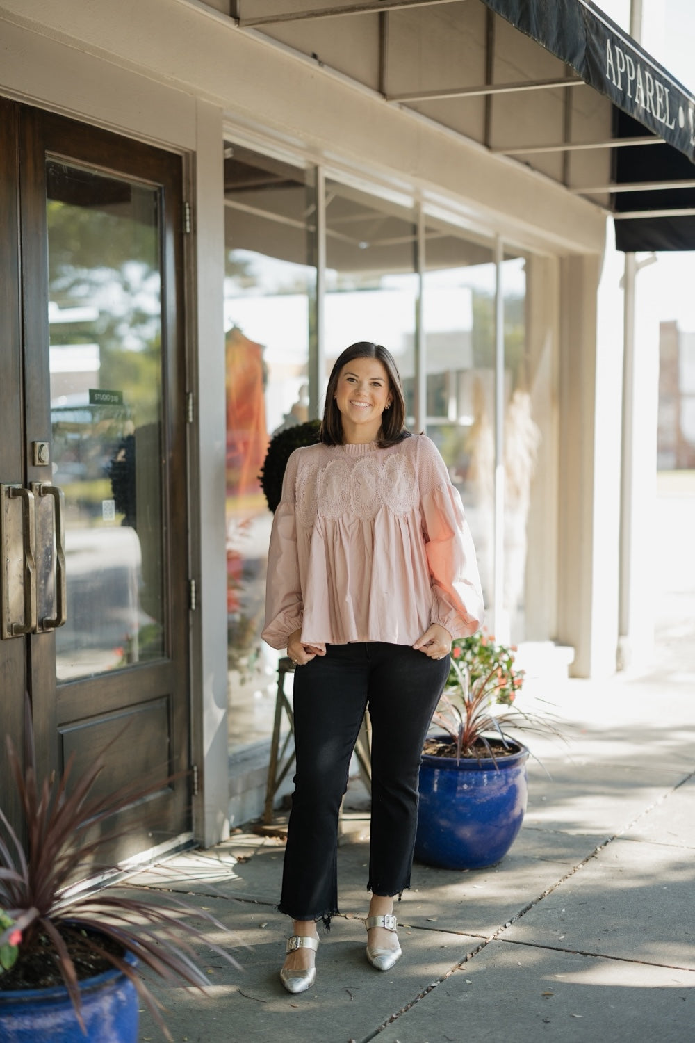 Romantic and refined, the Morgan Mauve Lace Appliqué Top brings soft sophistication to your wardrobe. Designed in a muted mauve hue, this blouse features delicate lace appliqué detailing that adds texture and elegance without overpowering the look. The lightweight fabric drapes beautifully, making it perfect for both dressy occasions and elevated everyday wear.