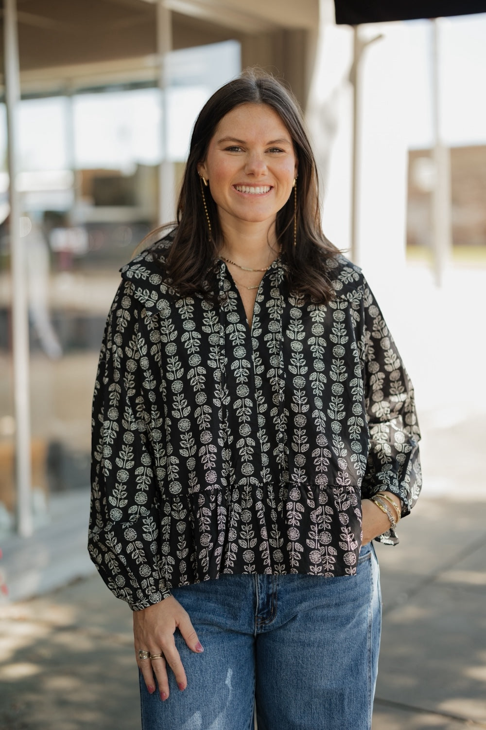 Statement style meets everyday ease in the Banks Oversized Collar Peplum Hem Blouse. Designed with a dramatic, oversized collar and a feminine peplum hem, this blouse brings a modern twist to classic tailoring. The structured silhouette flatters the waist while adding just the right amount of volume and movement.
