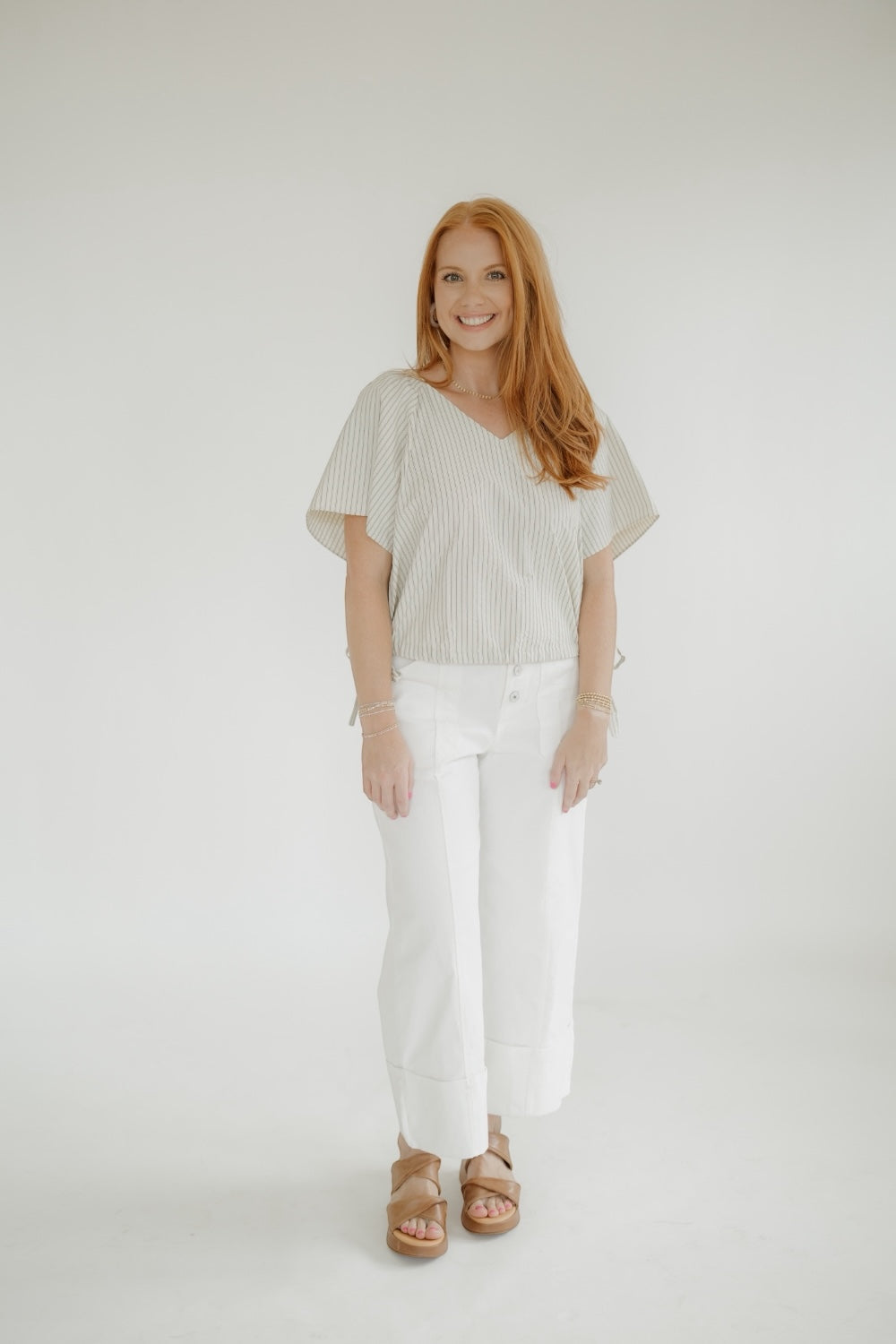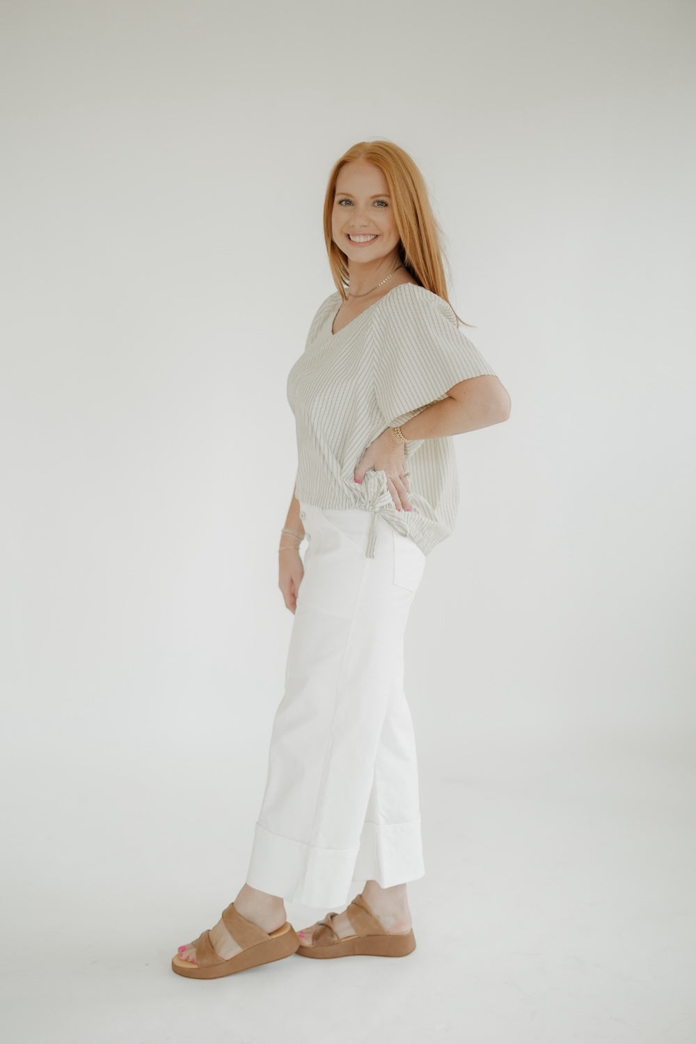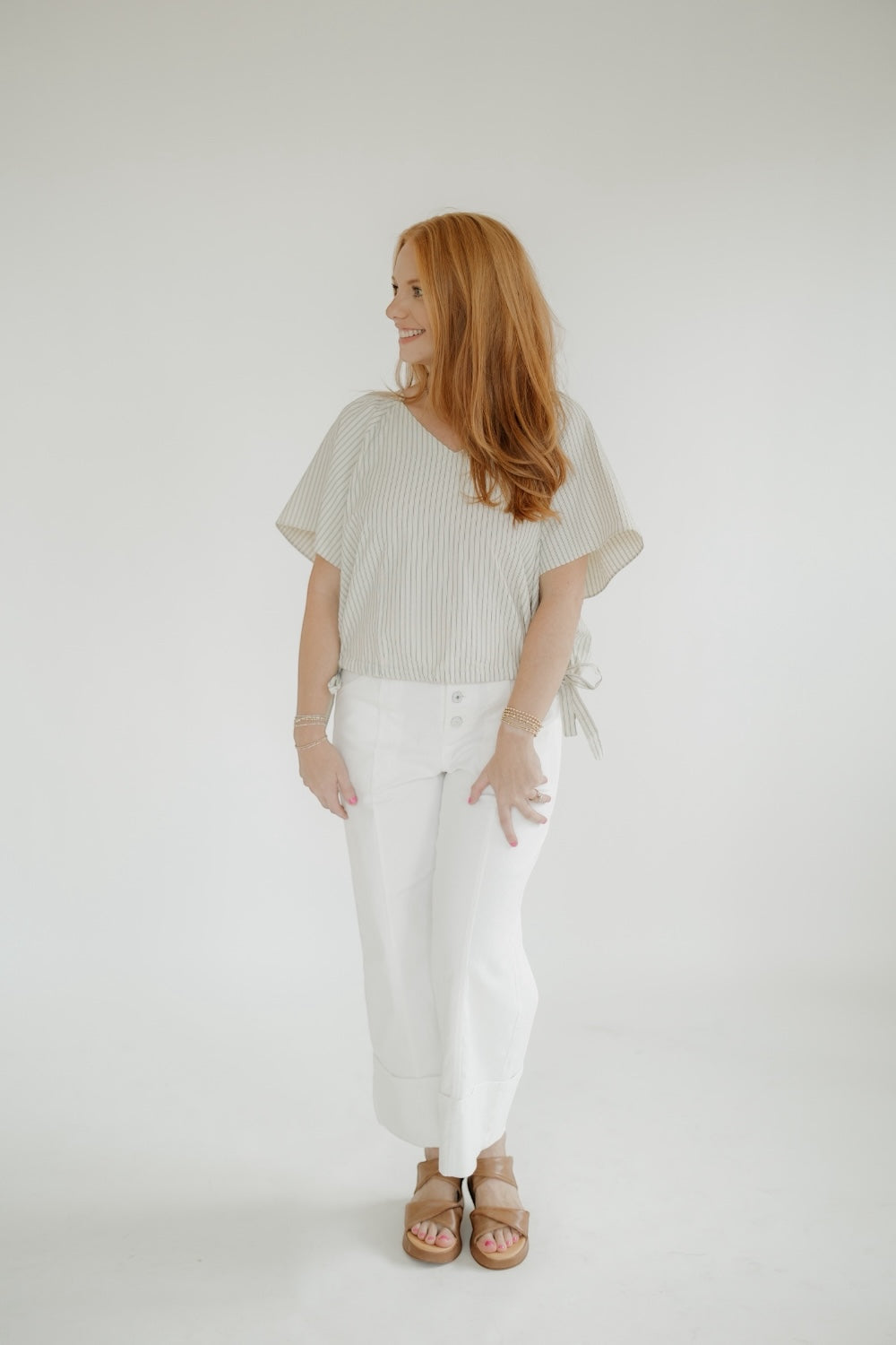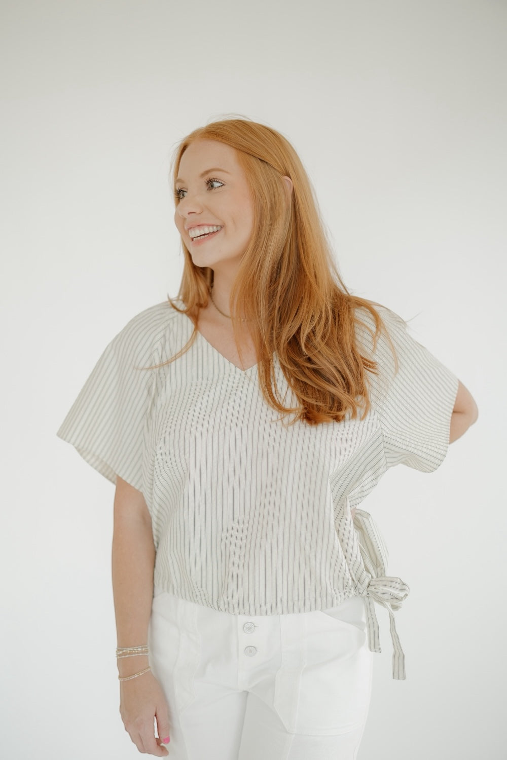 Classic stripes meet contemporary charm in the Striped Side Ribbon Tie Shirt. With its crisp lines and unexpected side ribbon ties, this shirt offers a fresh twist on a timeless favorite. The tailored silhouette is softened by the playful ties, making it perfect for both polished and relaxed looks.