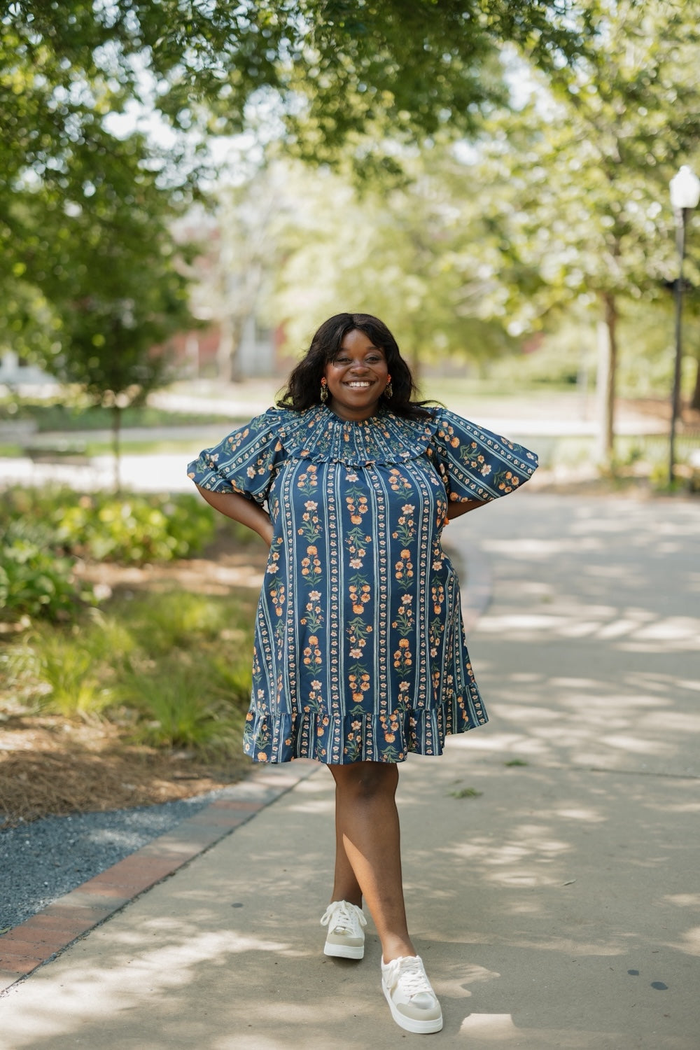 Effortlessly flirty and endlessly versatile, the Melinda Navy Floral Mini Dress is your go-to for everything from weekend brunch to date night. Designed in a rich navy hue with a delicate floral print, this mini dress features a flattering silhouette with a fitted bodice and flowy skirt. Feminine details like ruffled accents and subtle puff sleeves add just the right touch of romance.