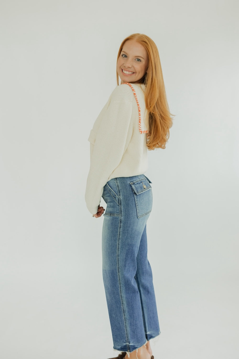 Playful meets polished in the Stella Color Stitch Detail Sailor Collar Cardigan. Designed with a charming sailor-style collar and contrast color stitch detailing, this cardigan brings a fresh twist to a classic silhouette. The relaxed fit and soft knit make it an easy layering piece, while the unique stitching adds a touch of personality to your everyday wardrobe.