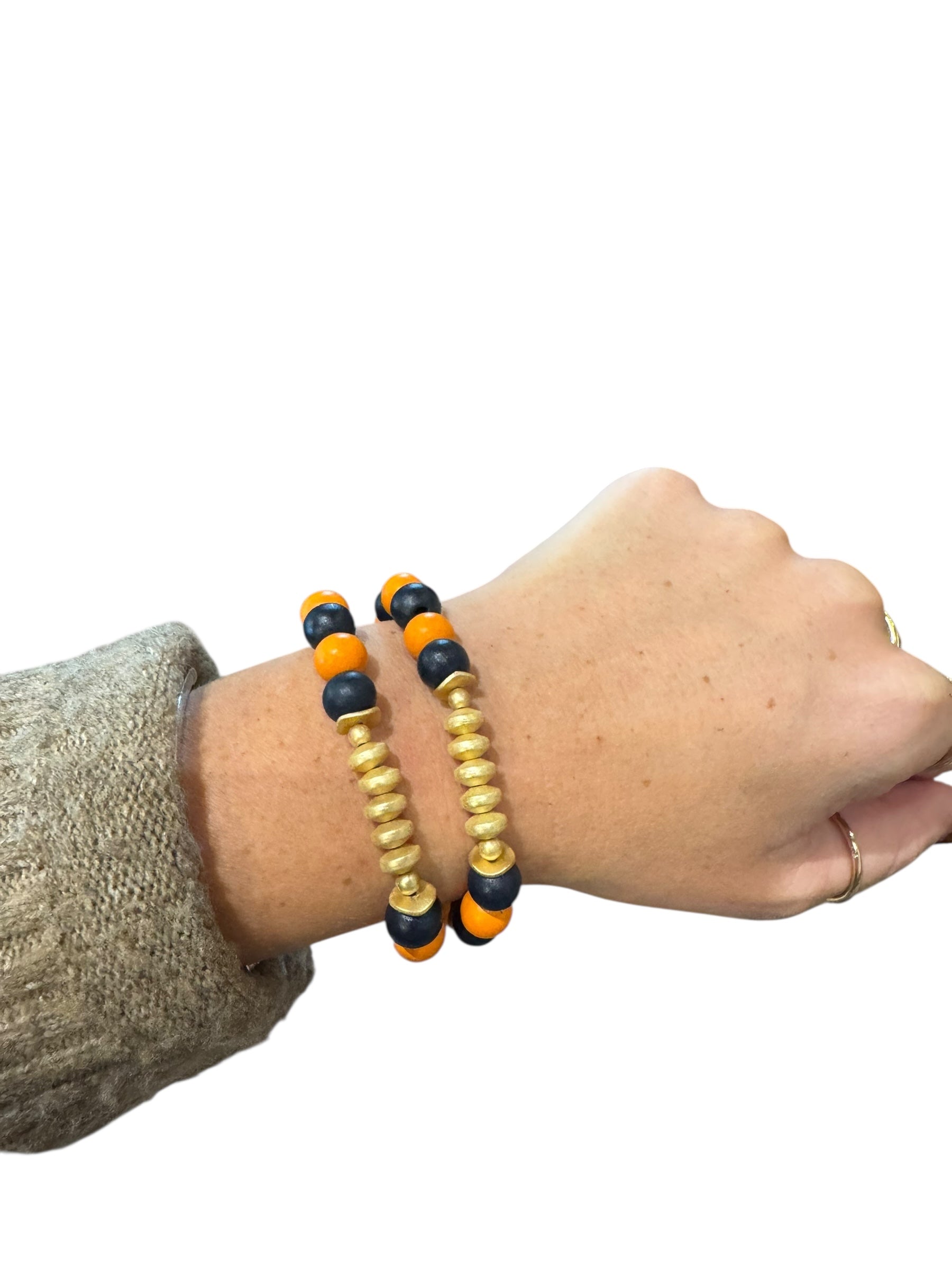 7" Stretch Wood Beaded Bracelets with Gold Accents