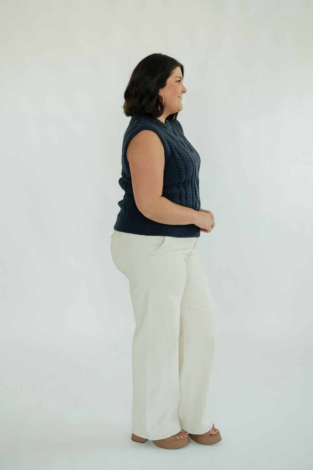 Elevate your layering game with this Navy Sleeveless Cable Knit Sweater — a modern take on a classic favorite. Crafted from a soft yet structured knit, this sweater features a traditional cable pattern that adds texture and depth without bulk. The rich navy hue offers endless versatility, pairing effortlessly with everything from crisp shirts to casual tees.