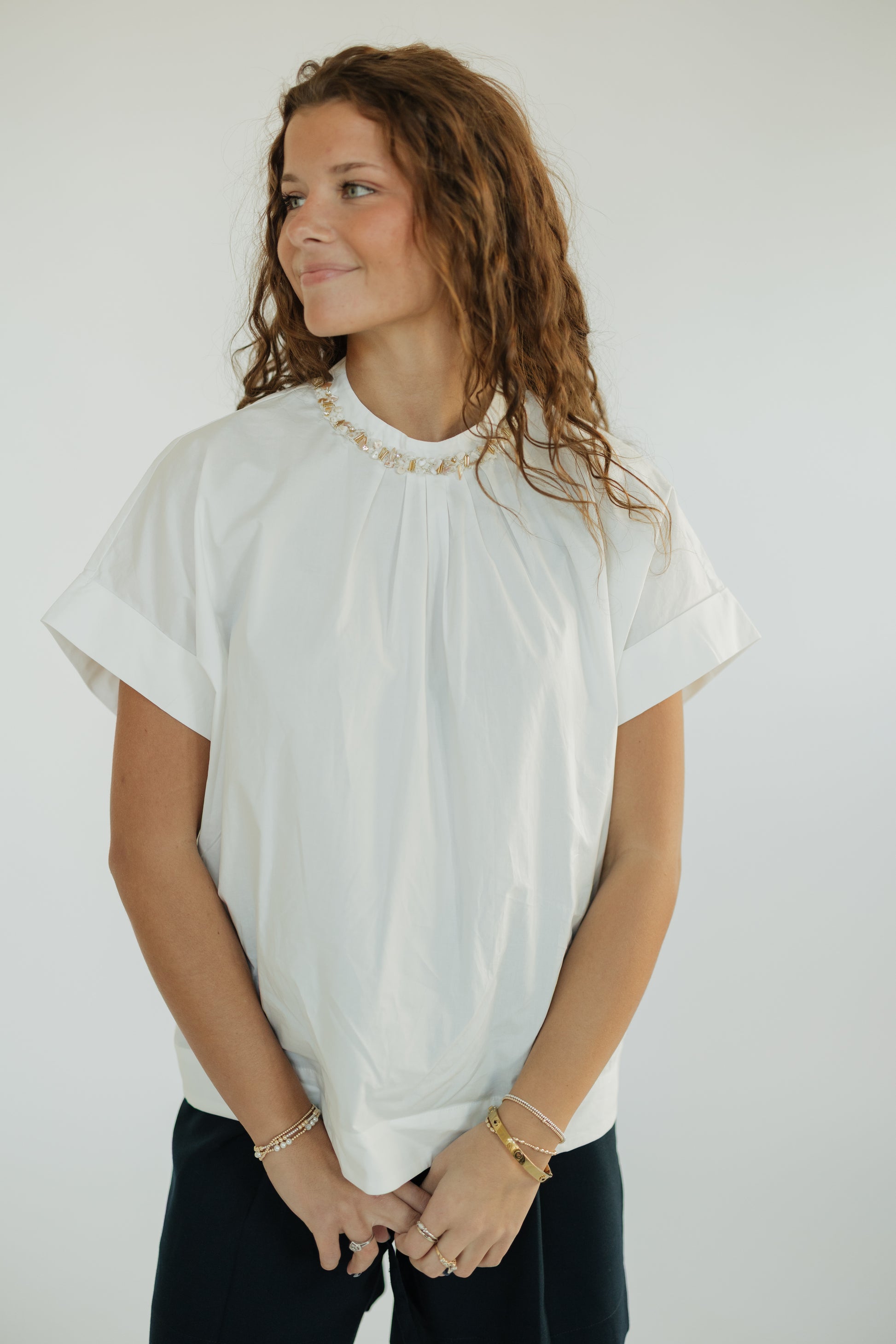 Timeless with a coastal twist, the Shelly Shell Neck Detailed White Blouse brings effortless elegance to any look. Designed in a crisp white hue, this blouse features a delicate shell-inspired neckline detail that adds subtle texture and a hint of seaside charm.