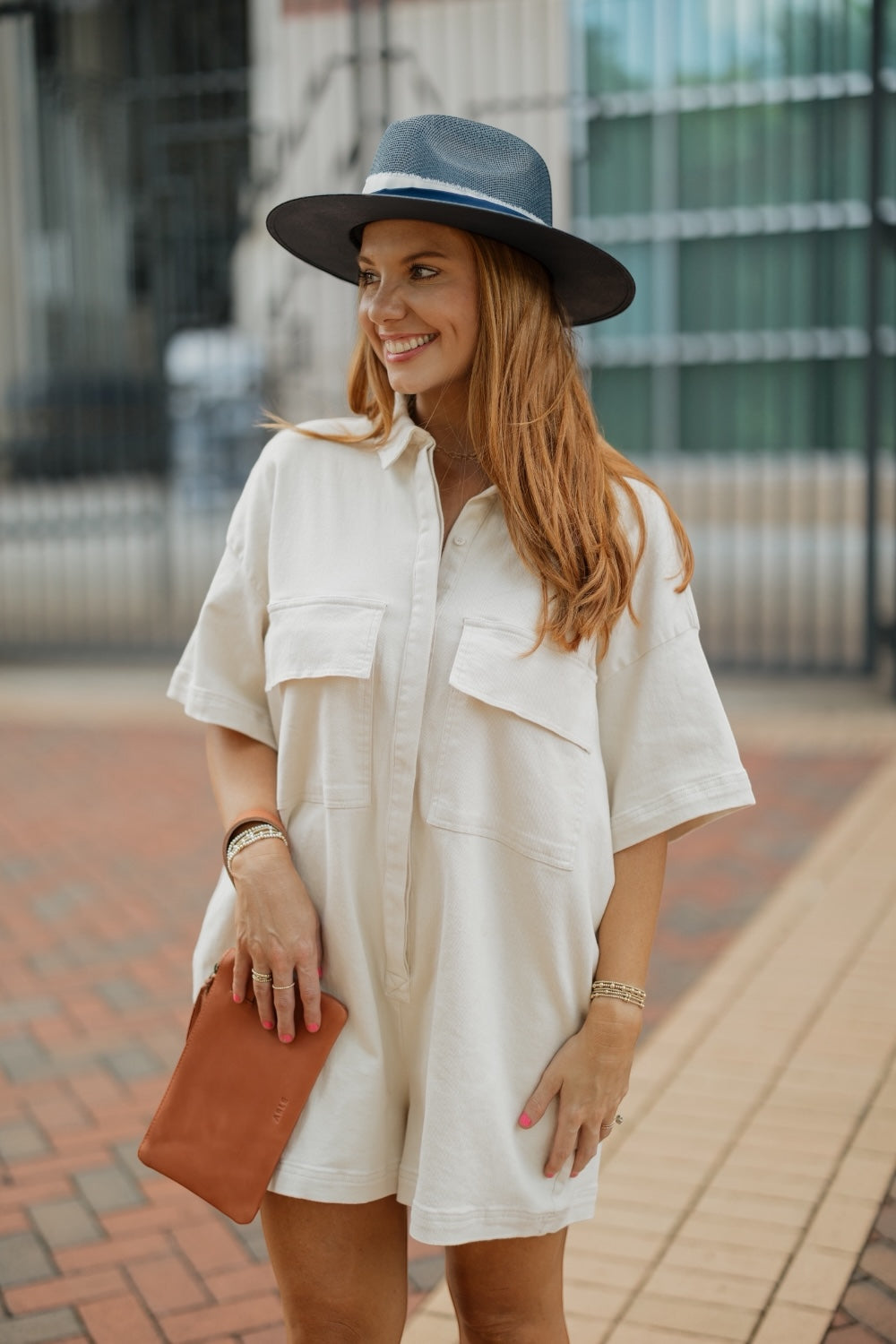 With classic button-front styling, chest pockets, and cuffed sleeves, this romper delivers a perfect blend of utility and everyday ease. Just add sneakers or sandals and you’re ready to go—no styling stress required.