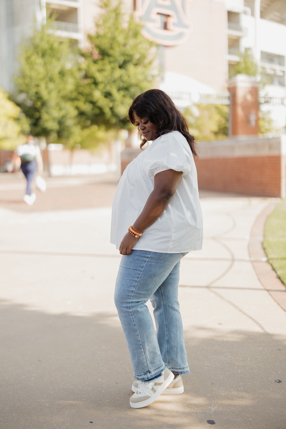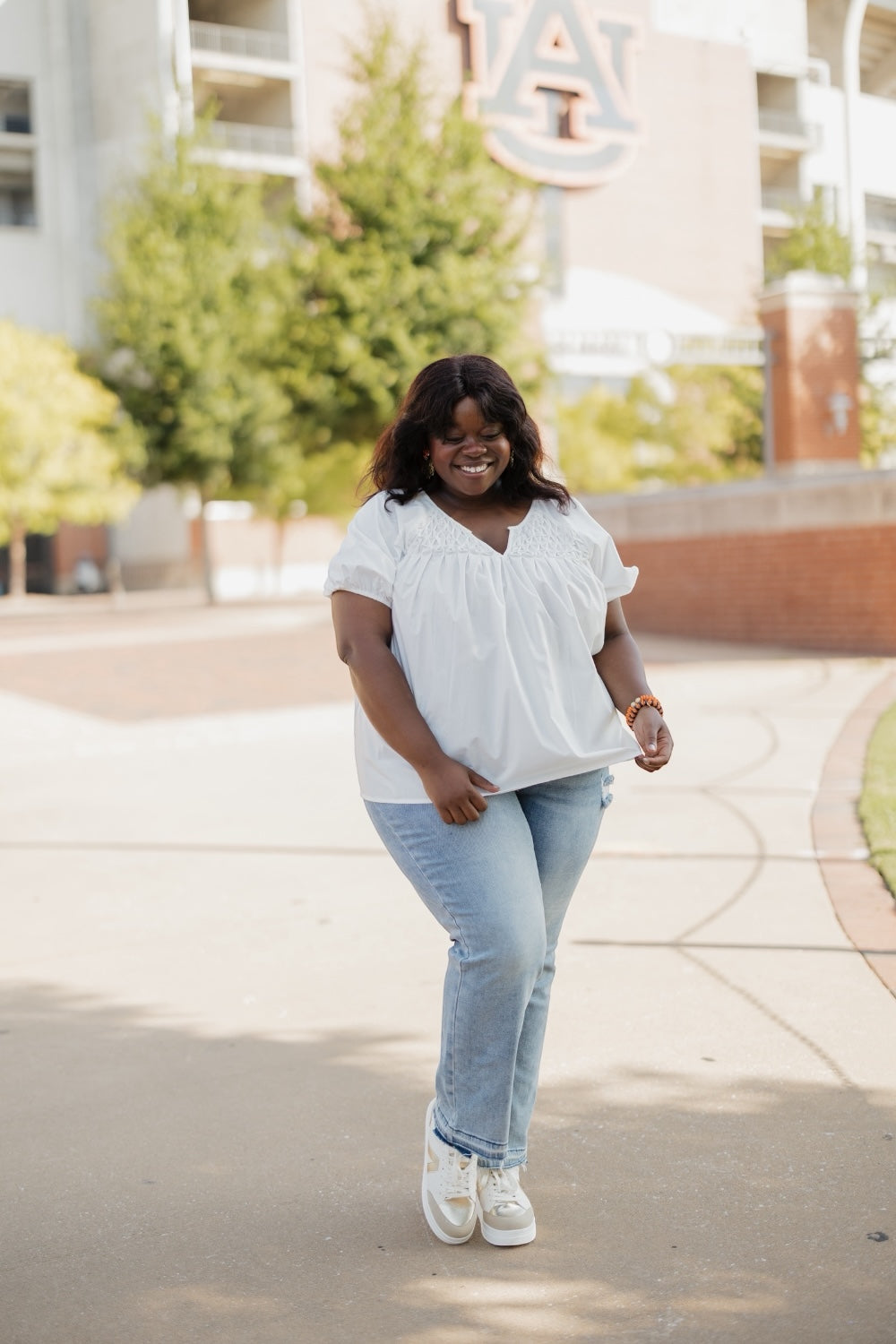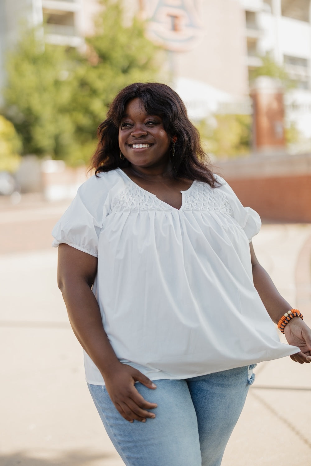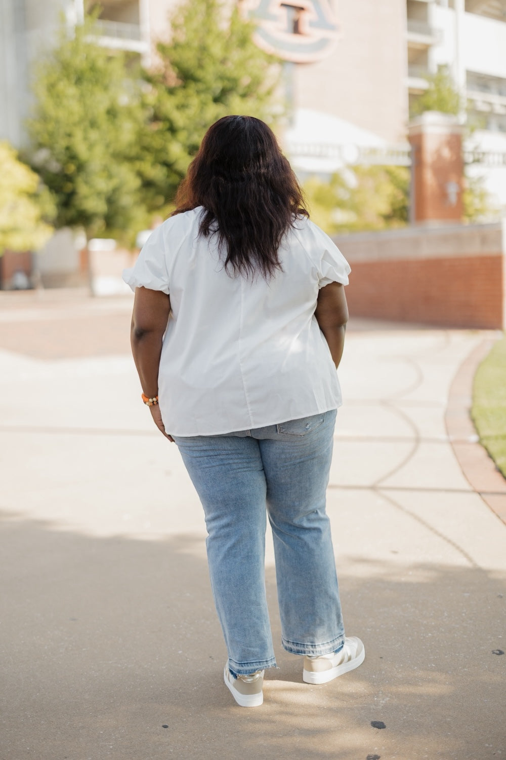 Timeless and effortlessly polished, the Penny White Poplin Textured Top is a fresh wardrobe essential. Crafted from crisp, breathable cotton poplin, this top features subtle textured detailing that adds depth and sophistication to its minimalist silhouette.