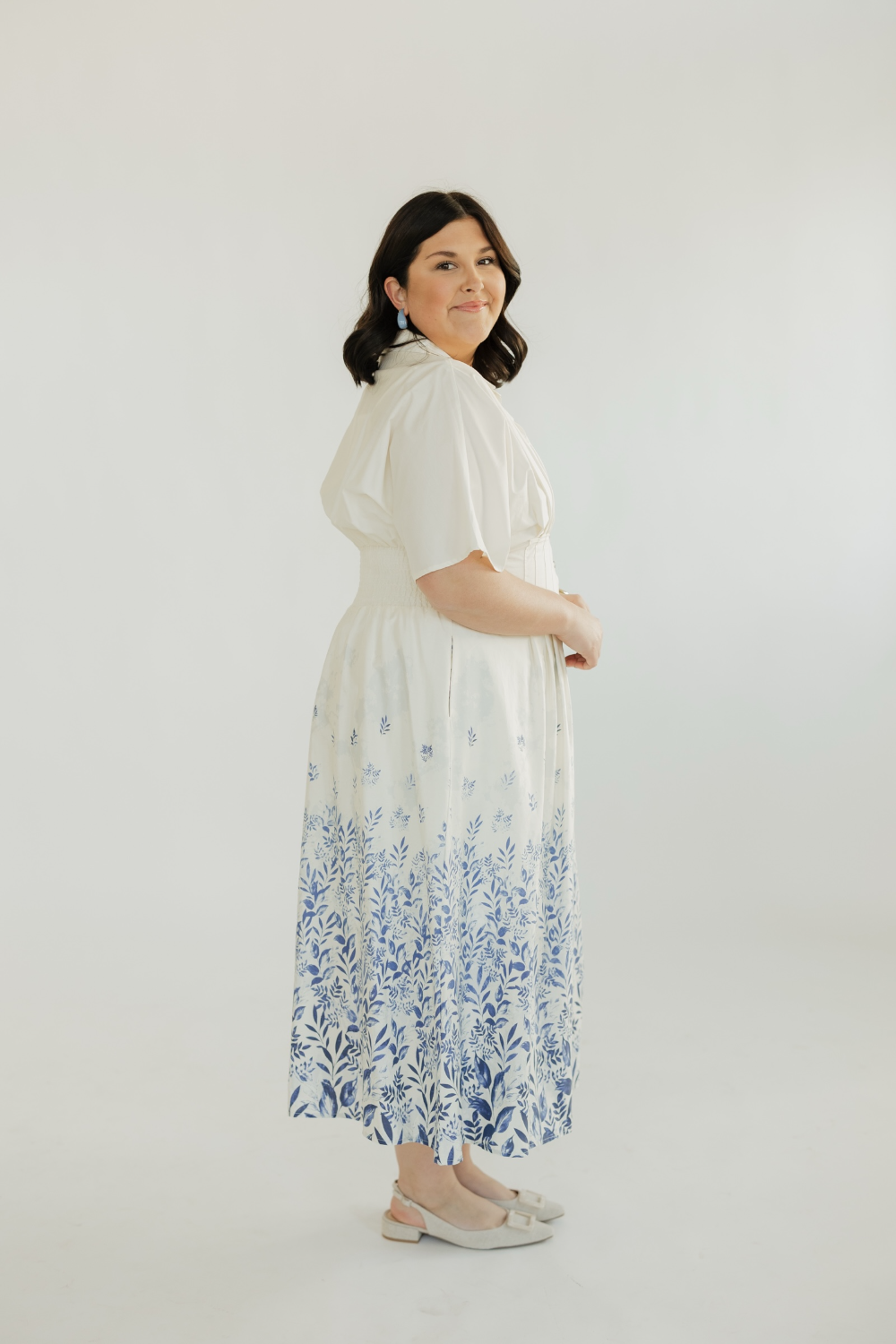 The Landrie Floral Border Print Shirt Dress combines timeless structure with soft, feminine charm. Featuring a beautiful floral border print, this dress adds a standout detail to a classic shirt-dress silhouette. Designed with a button-front style and an easy, flattering fit, it’s crafted from a lightweight, breathable fabric perfect for all-day wear. Effortlessly versatile, the Landrie Dress can be worn on its own, belted for shape, or layered for transitional seasons