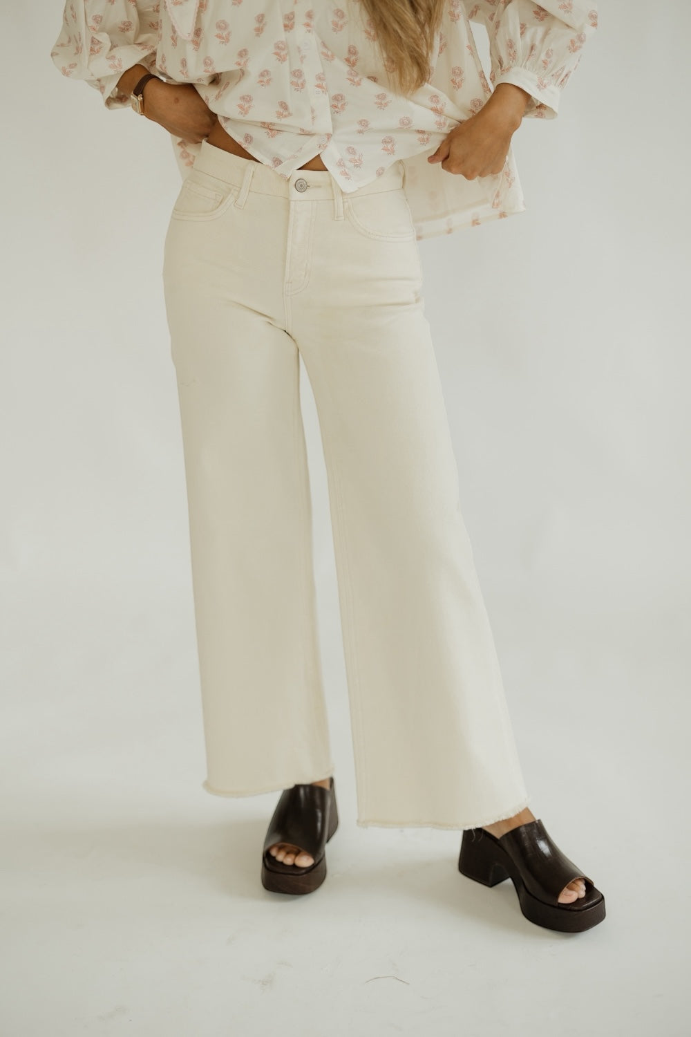 High Rise Raw Hem Ankle Wide - 79% Cotton 20% Lyocell 1% Spandex