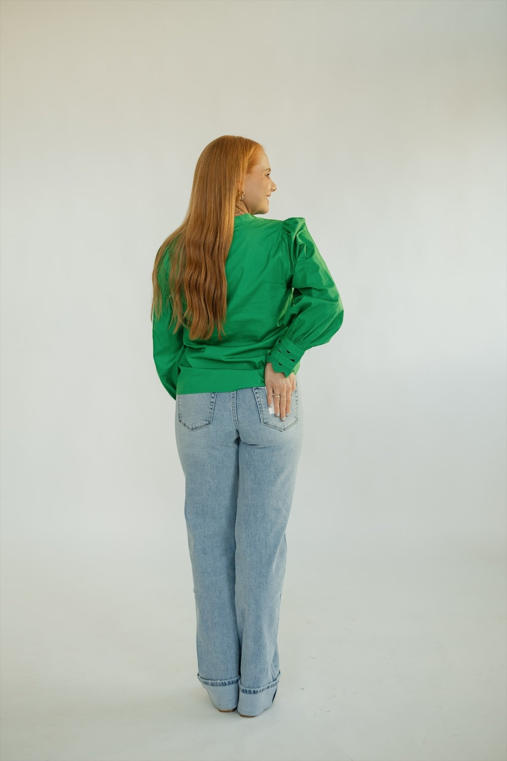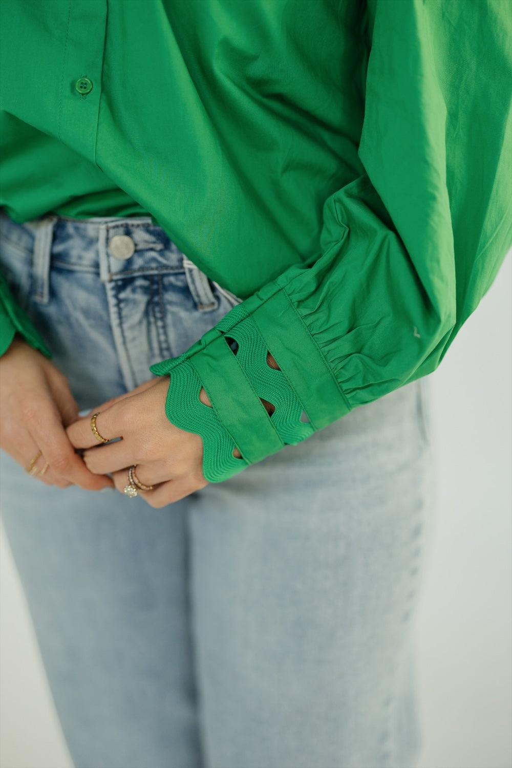 Ziana Button Down Ric Rac Trim Top – Kelly Green